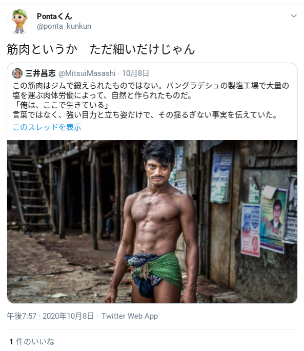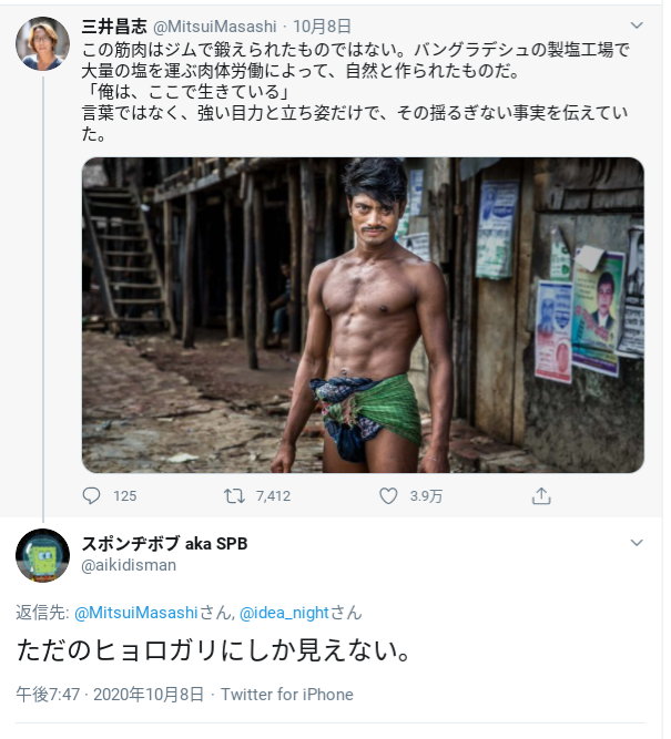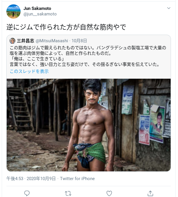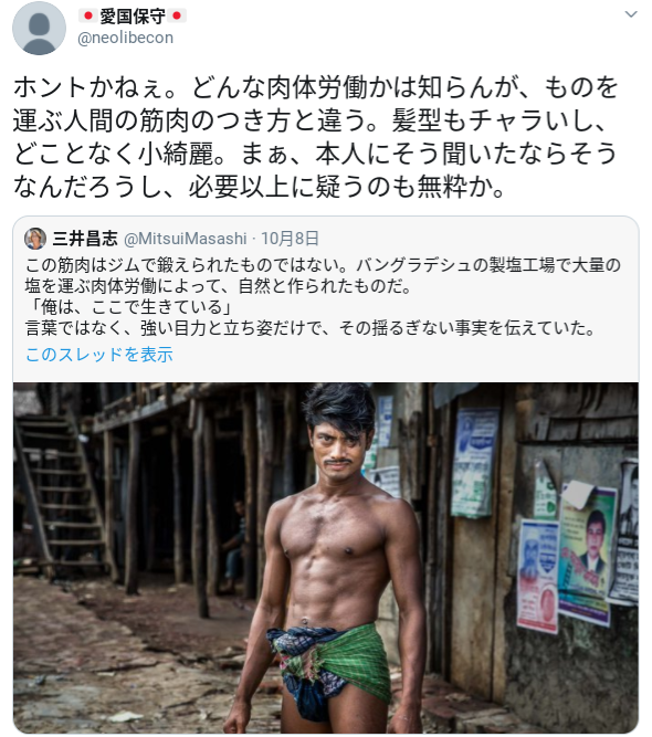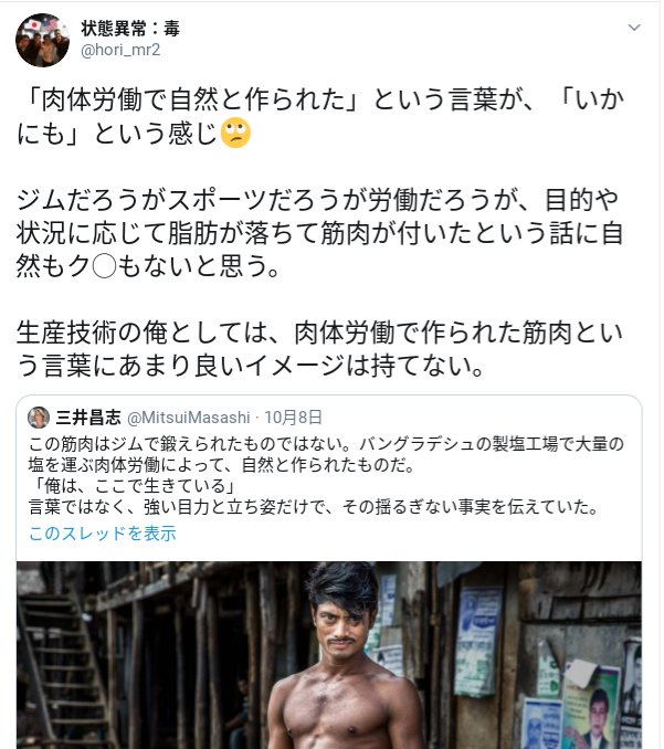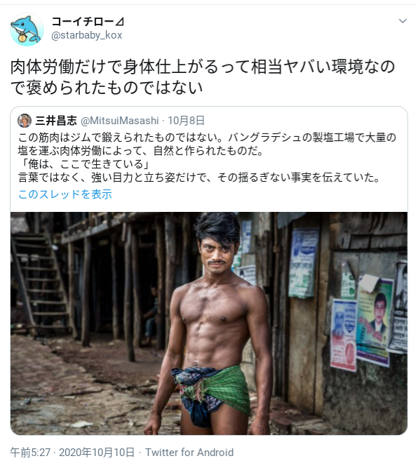 肉体労働じゃこんな大胸筋のつき方しねえだろw