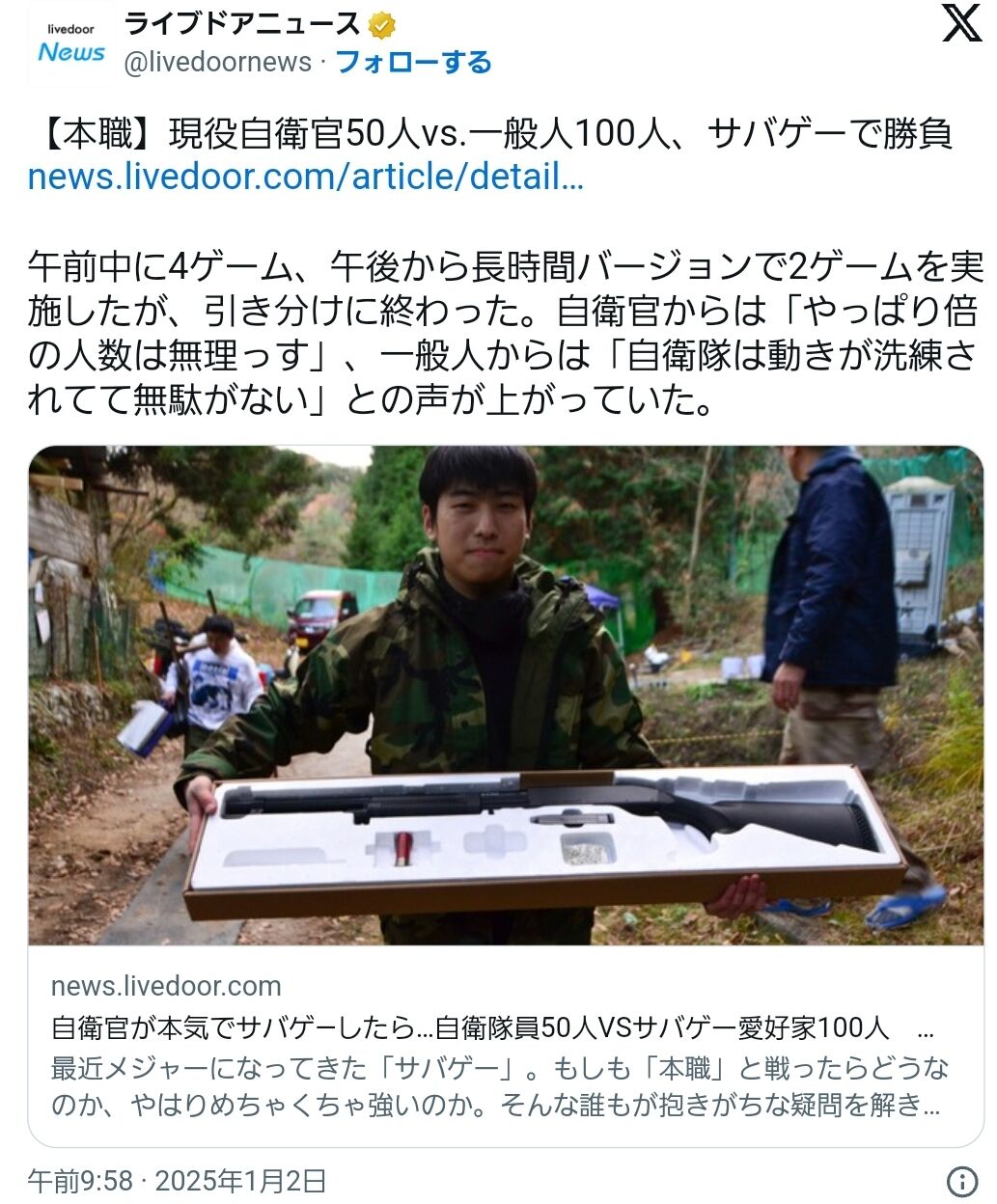 一般人いうてもサバゲーオタクやろし経験がちゃうんやろな