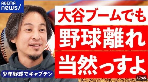 日本でも大谷の存在、WBC優勝、五輪金、メディアでの圧倒的野球報道なのにサッカー、バスケ、バレーなどと比べて競技人口大幅滅