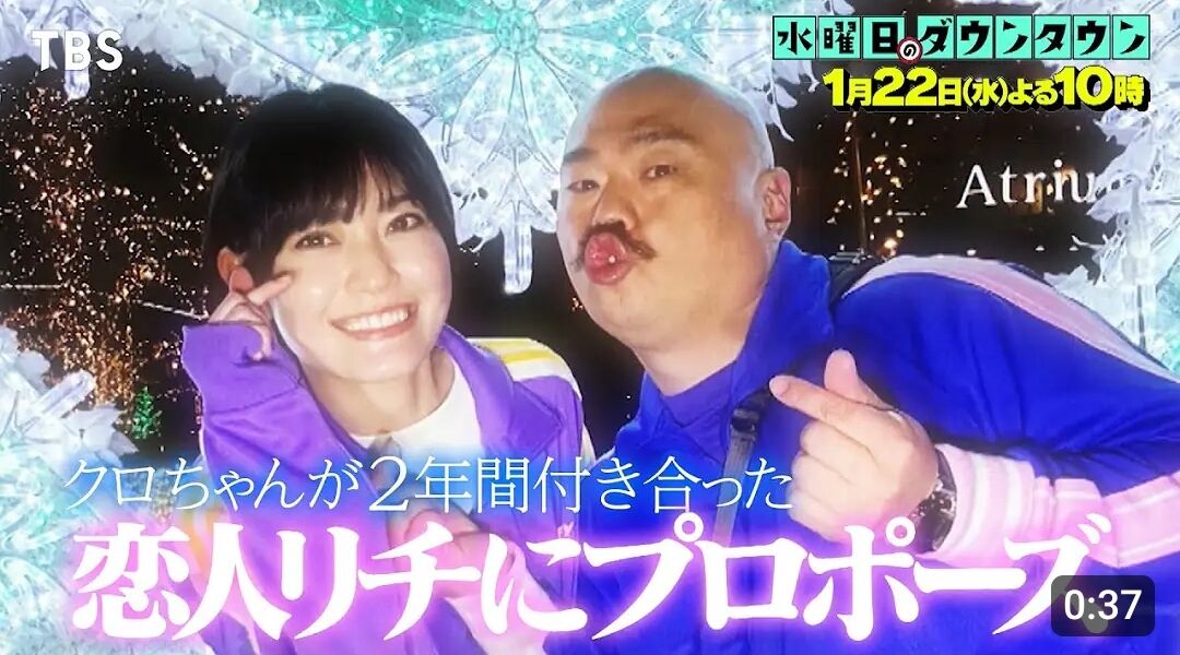 22日放送のTBS系バラエティー『水曜日のダウンタウン』(毎週水曜 後10:00)では、3ヶ月にわたって行われた『新春クロちゃんリアル人生すごろく』完結編として、クロちゃんが2年間付き合った恋人・リチにプロポーズする様子が届けられた。決意のプロポーズをするも、リチから返ってきたのは「きょうで全部終わらせたい。もう私は、とっくに限界を迎えていました」というNOの言葉だった。