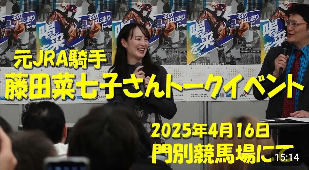 イベントは道営・ホッカイドウ競馬の開幕に合わせて実施された。藤田さんは女性初の平地重賞勝利を含め中央競馬で通算166勝を挙げていたが、通信が禁じられている競馬場の宿泊施設にスマートフォンを持ち込み、連絡を取っていたことが発覚。騎乗停止処分を受け、自ら引退した。