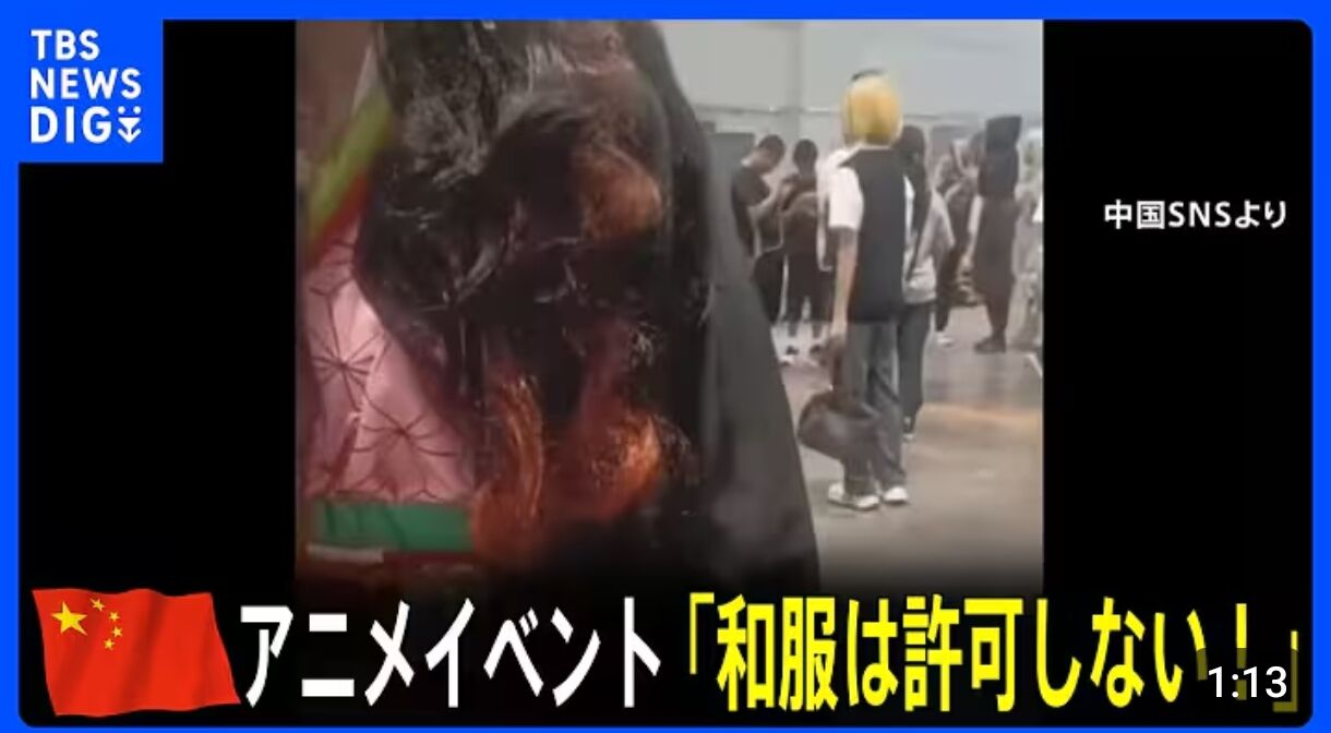 中国・上海で日本のアニメキャラクターのコスプレをしていた若者に、「日本の服を着てはいけない」と男性が詰め寄り、観光地が一時騒然となりました。