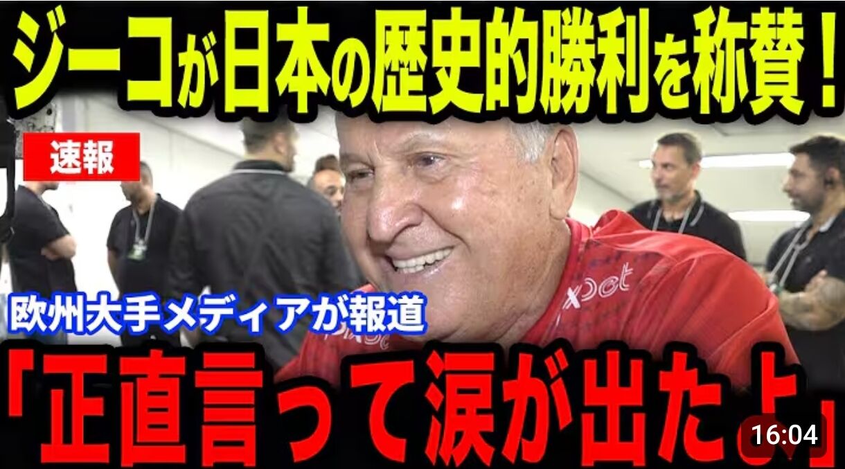 日本は過去13戦未勝利だったサッカー王国に対して、前半0-2ビハインドから逆転勝ち。かつて日本を率いたジーコ氏にとっては母国が倒される形となった。「30分しか試合を見られなかったので、見られた30分が日本が点を決めた30分だったので、そこしか話はできないが、改めて日本の強さを証明できた試合だった」と戦いぶりを称賛した。