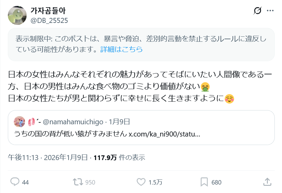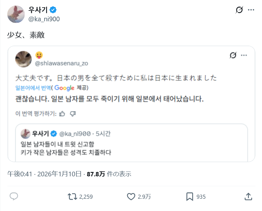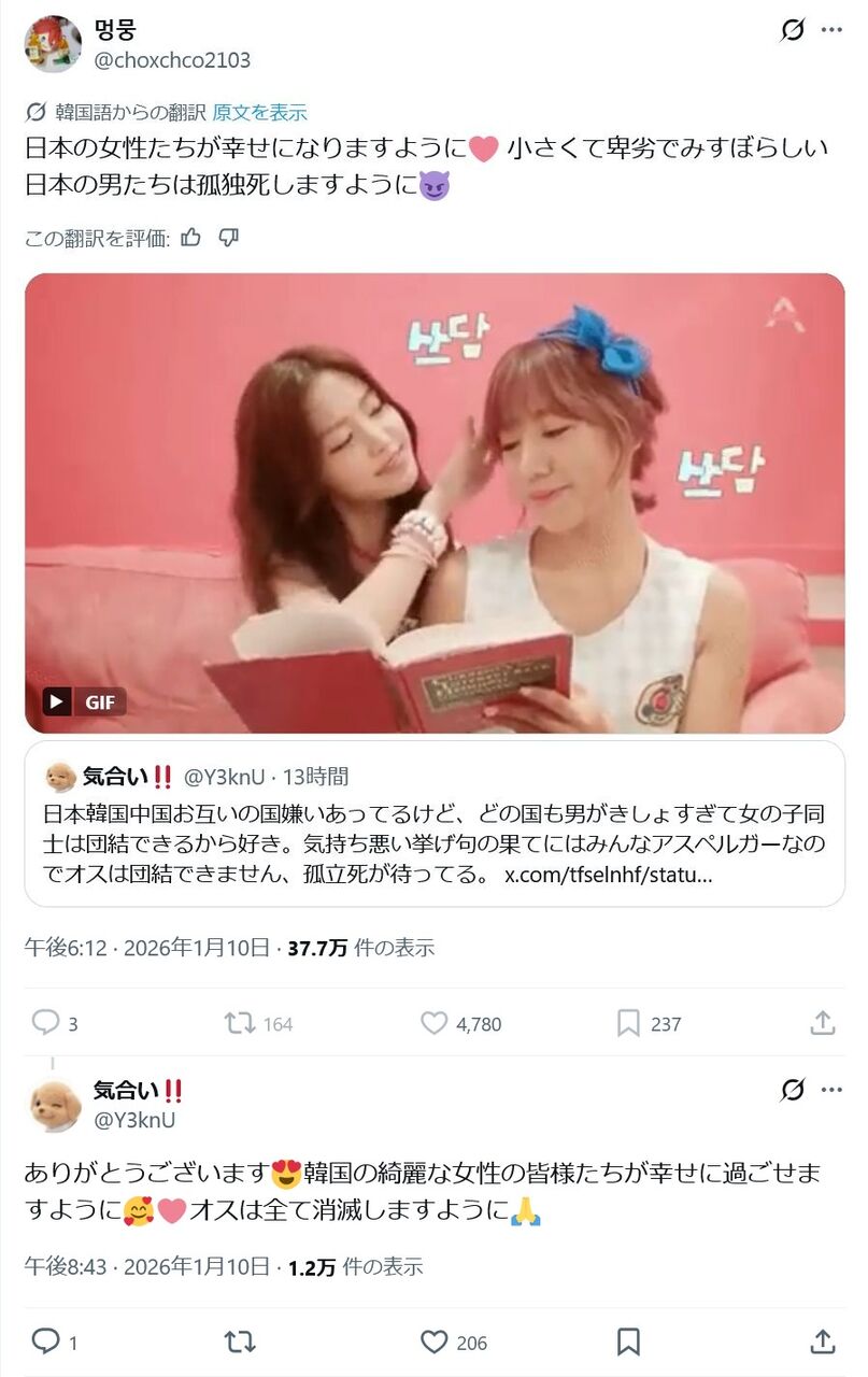 韓国フェミ超絶ブチギレ&それを日本女が引用RTで絶賛してまんバズ連発