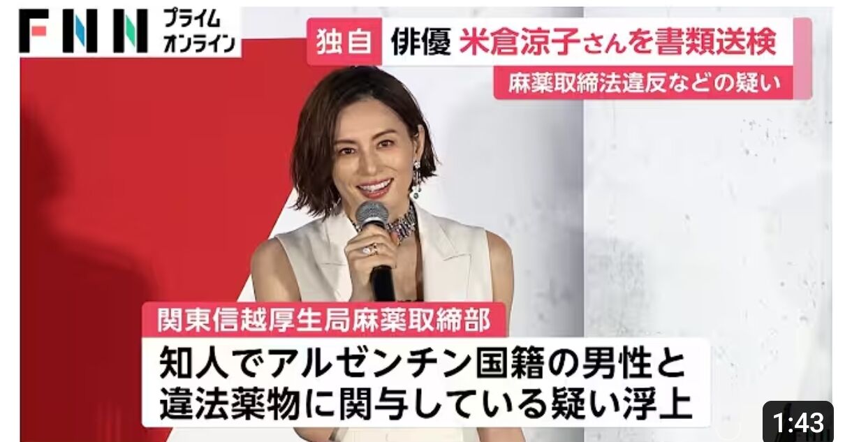 【独自】米倉涼子さん麻薬取締法違反容疑で書類送検…関係先から違法薬物押収されアルゼンチン男性と共に関与の疑い 麻薬取締部|FNNプライムオンライン